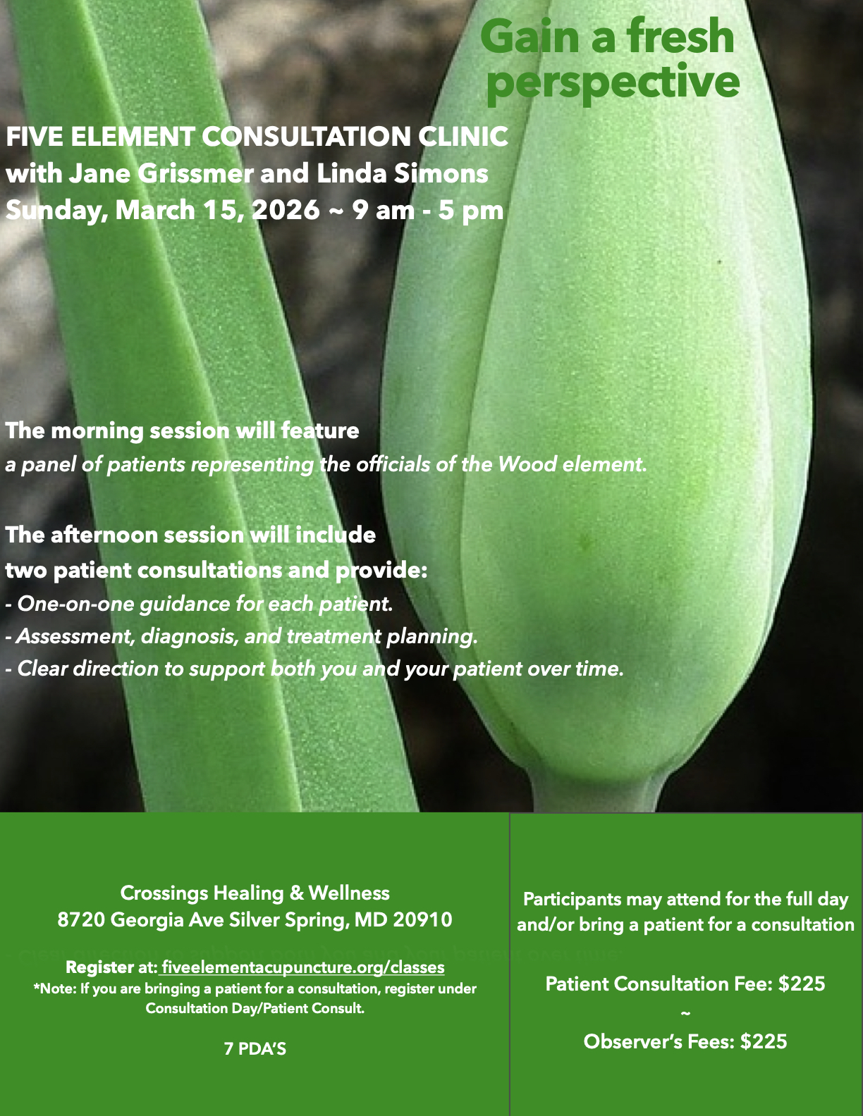 Wood/Spring One Day Session with afternoon consultation clinic